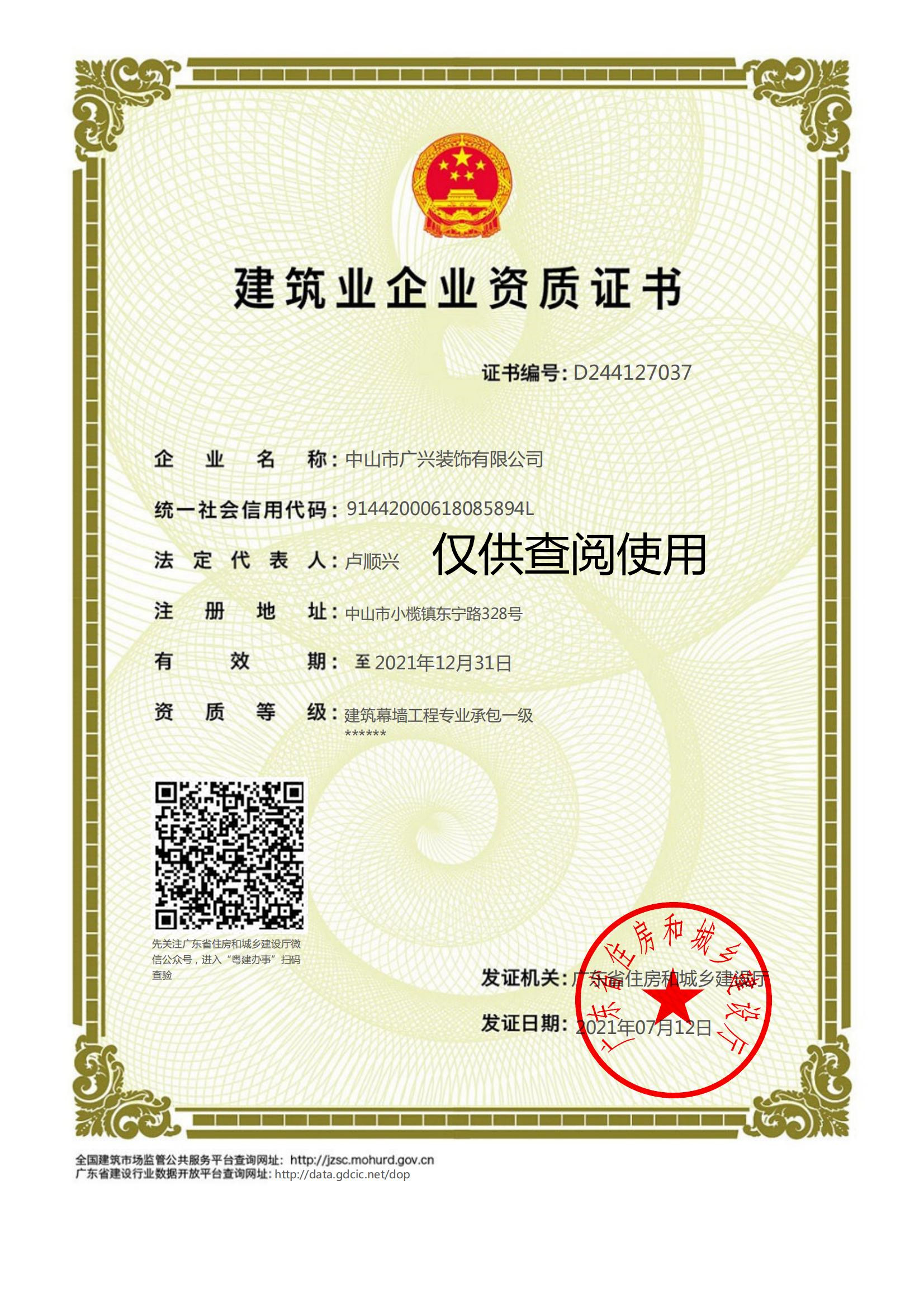 中山市廣興裝飾有限公司創建于1985年,是一家集鋼結構、建筑、幕墻、裝修裝飾、鋁合金門窗專業的設計、加工及施工安裝為一體的大型綜合性建筑企業。公司總部位于中山市小欖鎮,在中山和珠海均建有生產加工基地,總占地面積60000多平方米。